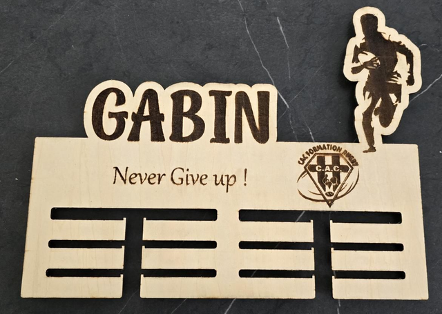 Exposez vos médailles avec style grâce à ce porte-médailles en bois sur-mesure. Gravé à votre nom, avec une date ou un message, il allie élégance et robustesse pour mettre en valeur vos exploits tout en gardant vos récompenses parfaitement organisées.